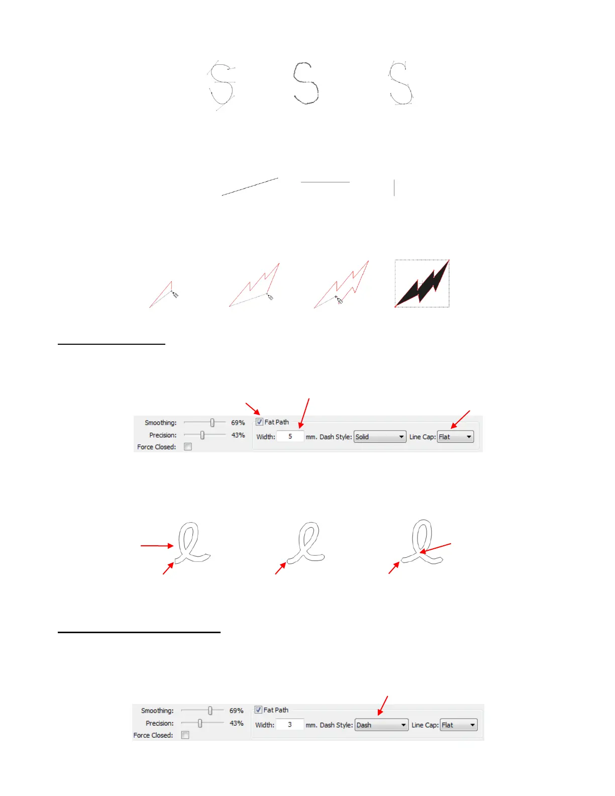 To draw a line that is set to a particular thickness, mark the Fat Path box and enter settings for thickness