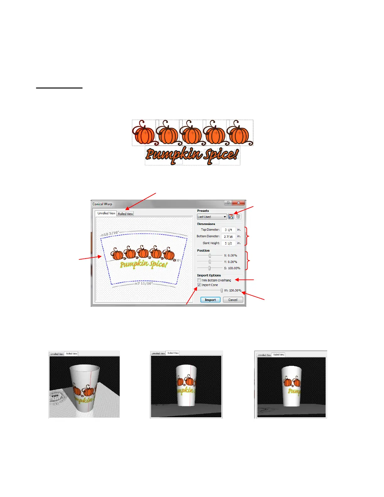 done. If you selected Import Cone, then you will see both the outside shape of the wrap for the tumbler, as