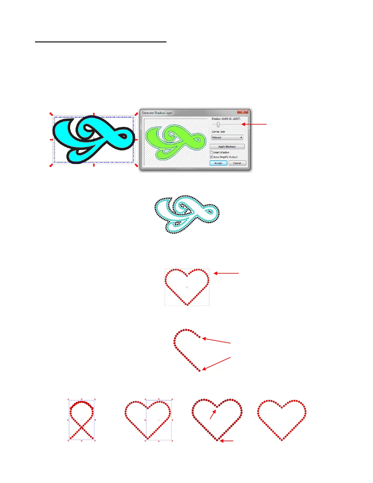 Choose a Shadow Width at least the size of the circles plus the spacing. In the 10SS example ,the circles