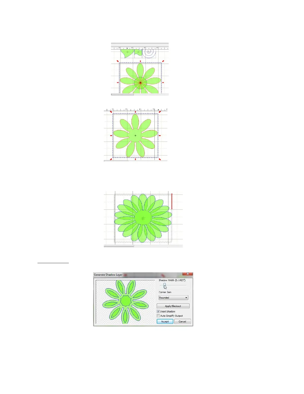 flower center is only the center shape. Use the Shadow Width slider to create the inset. Click on Accept