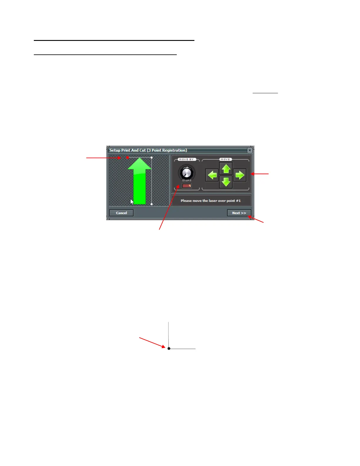 The next step is to move the laser dot so that it is precisely at the corner of the printed registration mark.