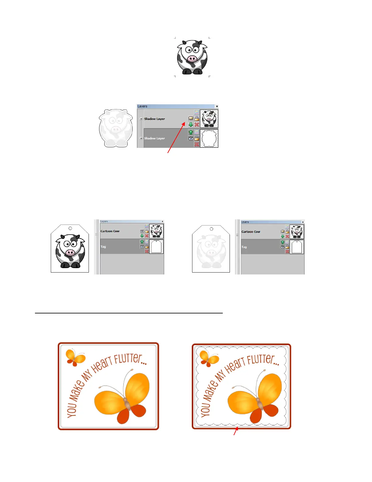 Cutting: Cow layer is hidden. Only tag layer
