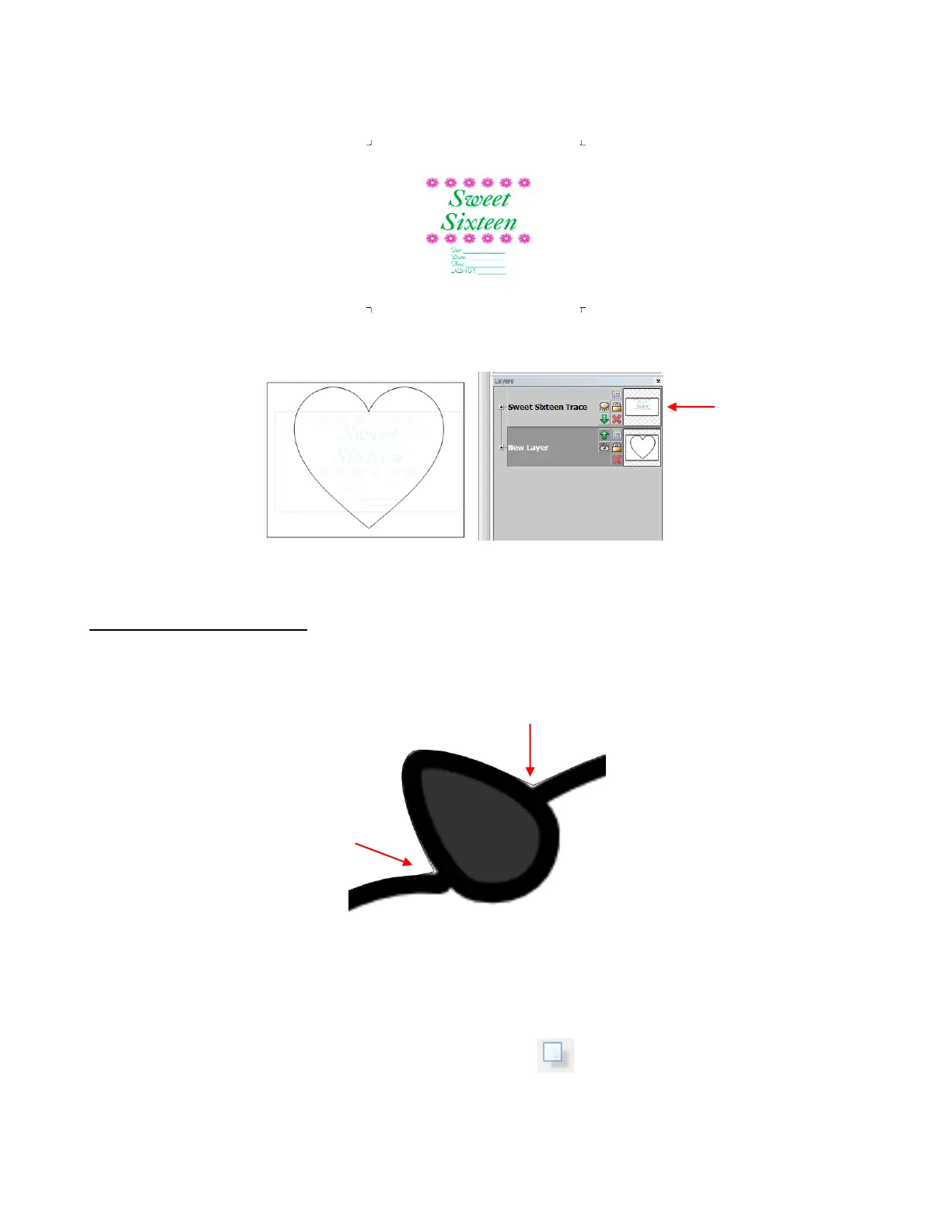 After printing, the original graphic layer is turned off, so that only the heart and rectangle will be cut: