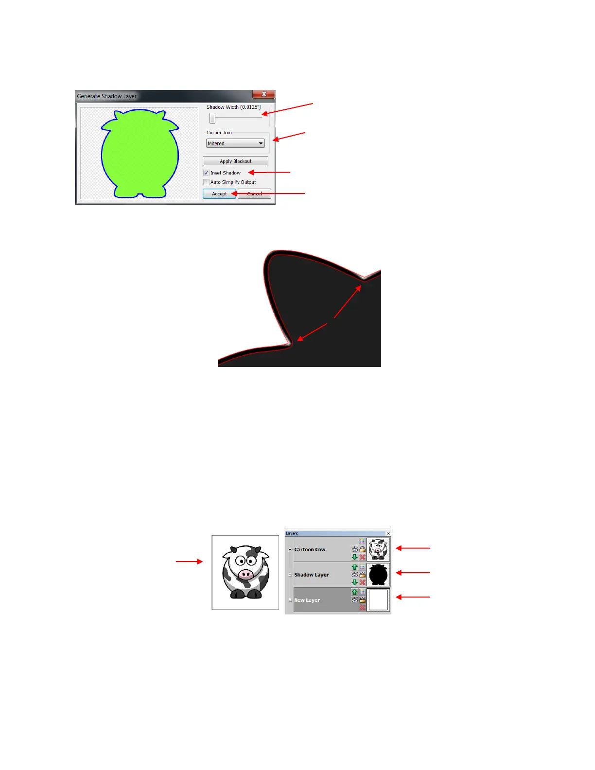 Move the new inset cut line layer to the bottom of the Layers Bar so that it is behind the original imported