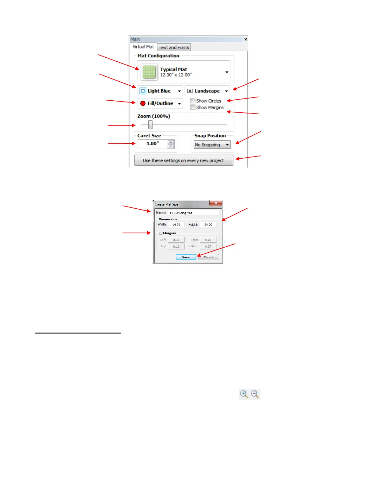Scroll the Zoom setting on the Virtual Mat tab on the Main Bar
