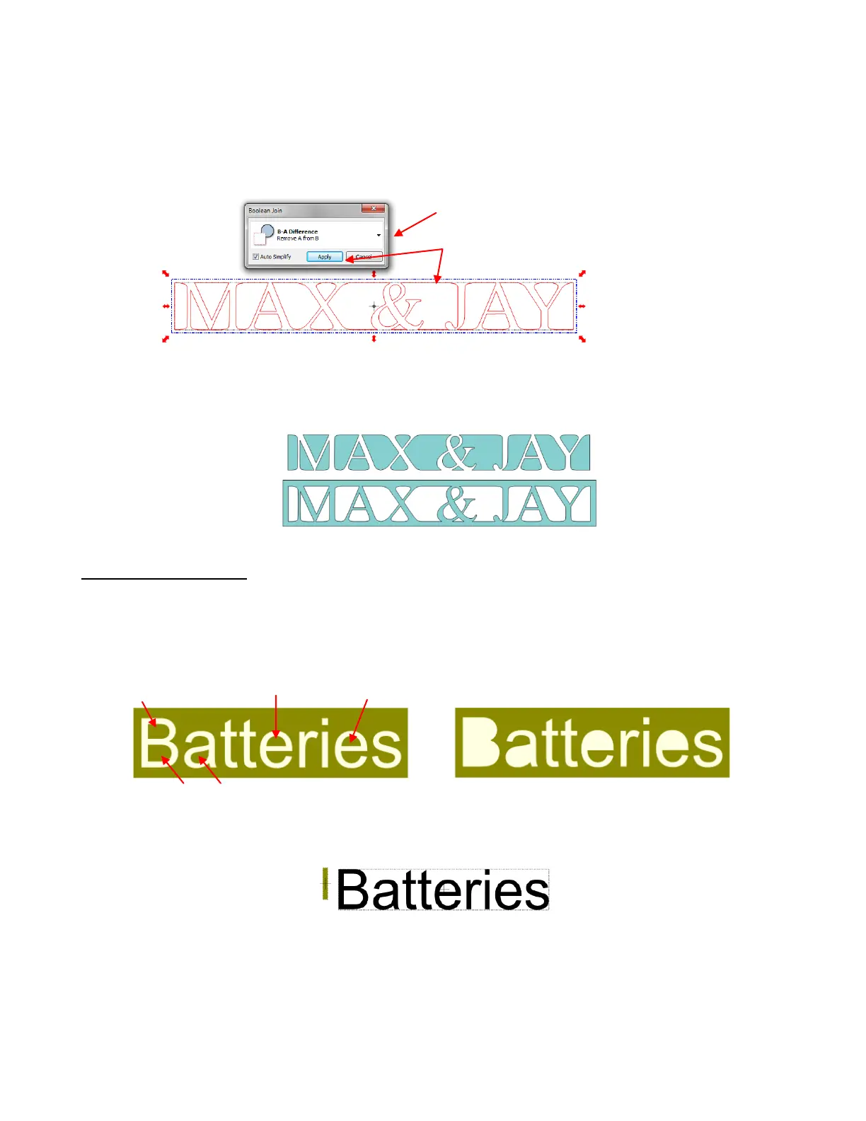 such as Arial, some of the letters, such as a “B”, “a”, and “e”, will not work because they have interior paths
