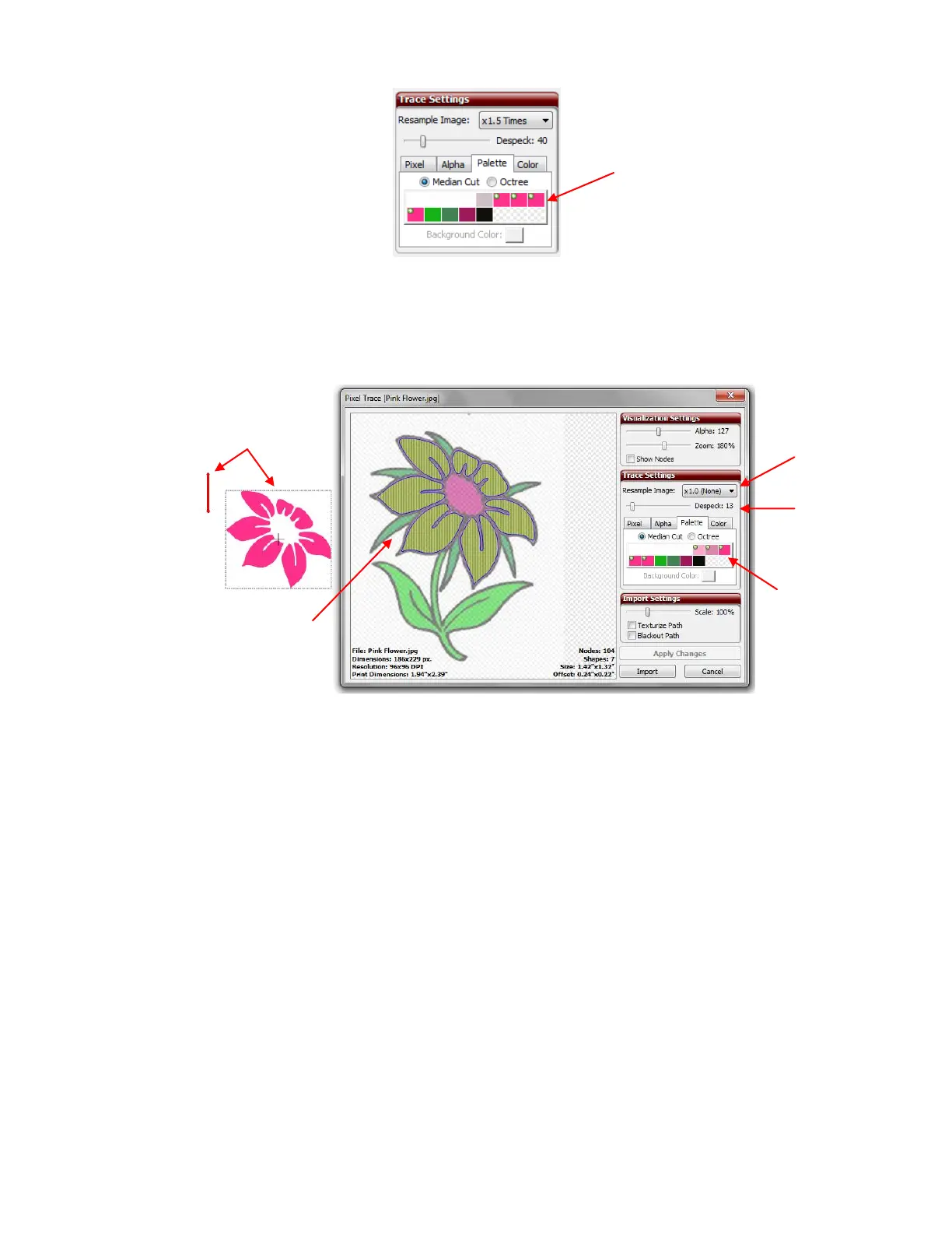 specks and to sharper or soften the tracing (just as they were used in the Pixel Trace method). In this