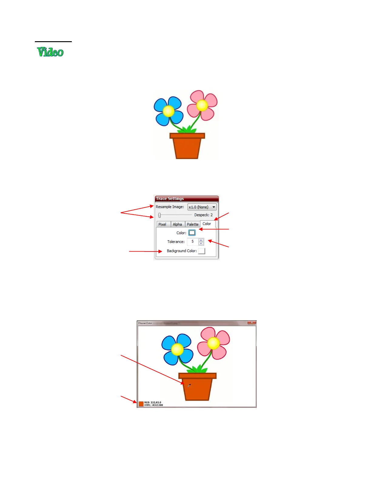 imported image and you can select the first color to be traced. Let’s start with the interior of the flower pot.