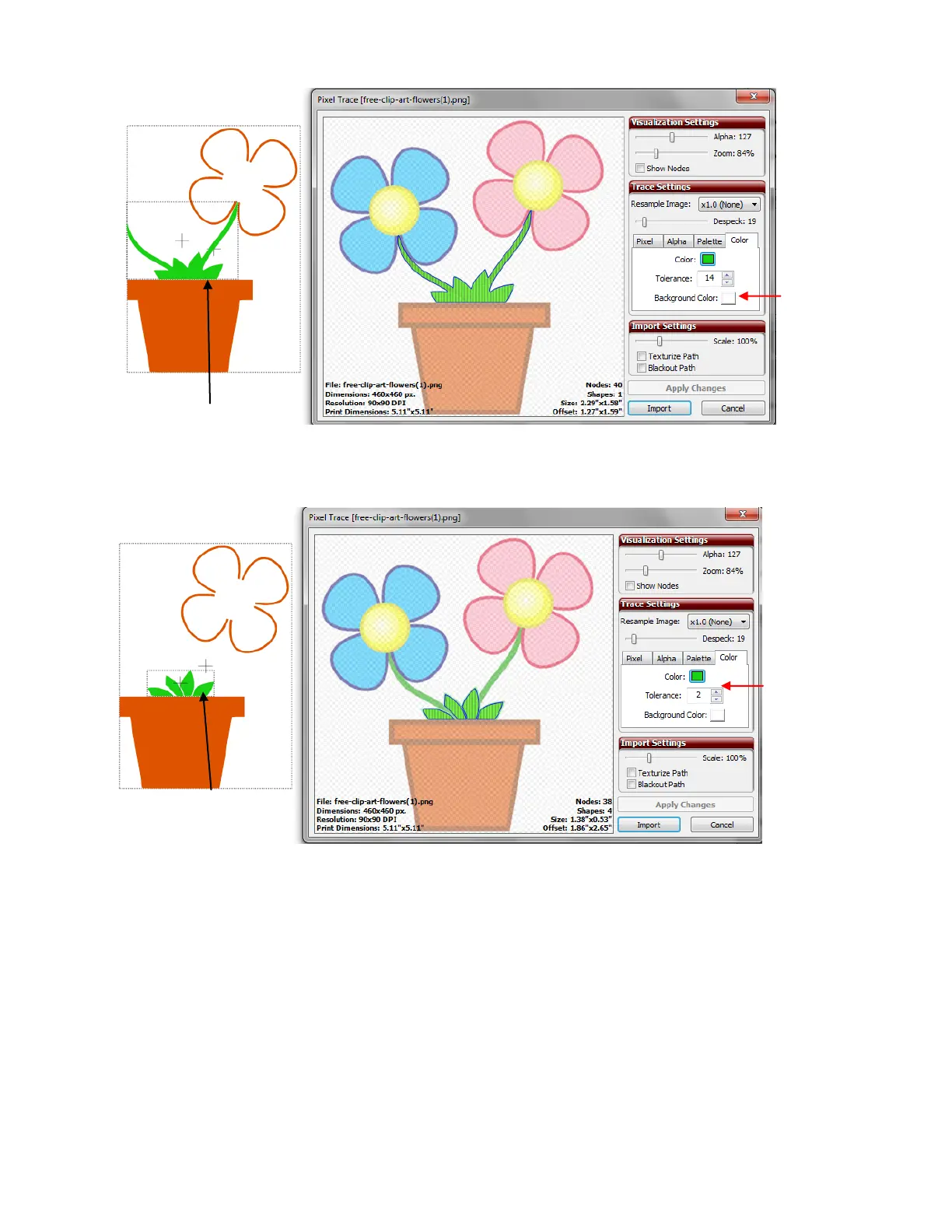 Click on Import, answer Yes to trace more layers, and then select the stem color. Again, the Tolerance