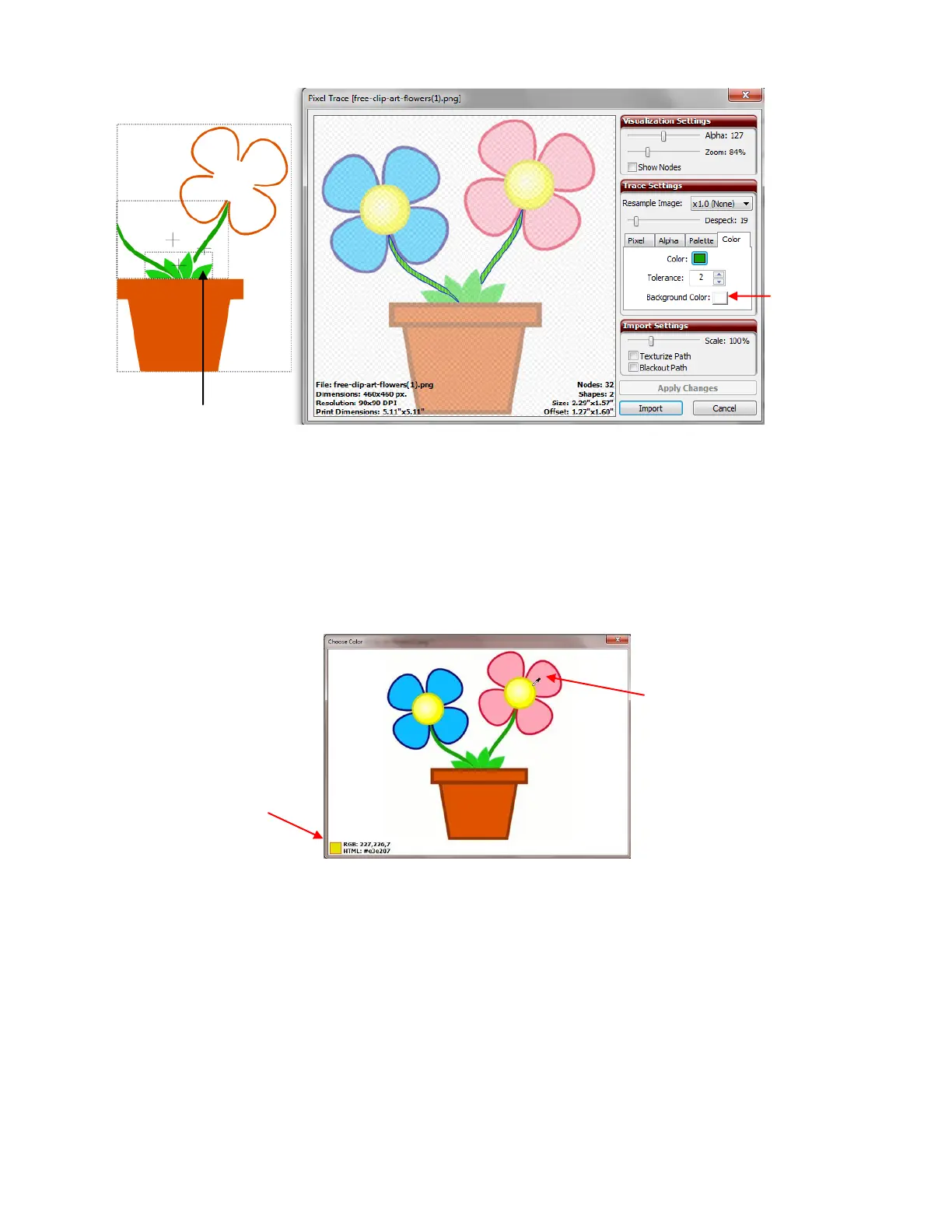 Click on Import and now repeat for the blue and pink flowers. It is decided that just the main parts of the