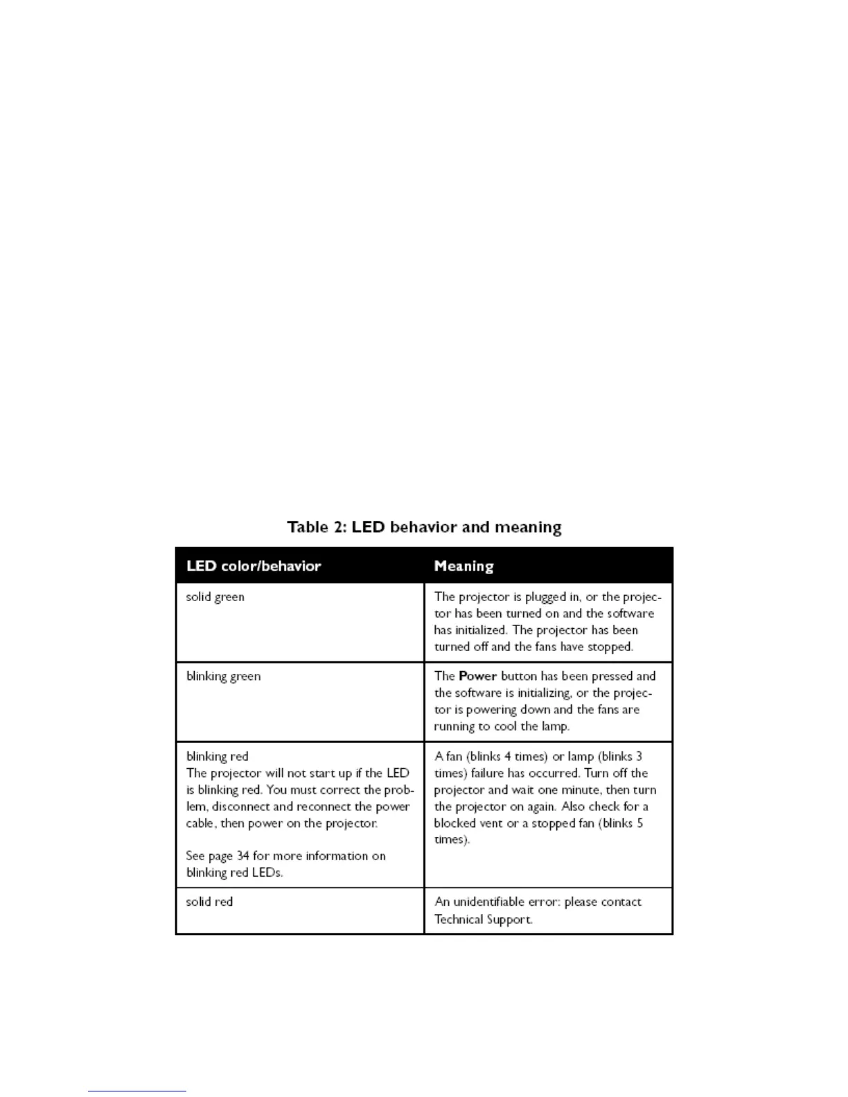The LED on top of the projector’s keypad indicates the state of the projector and can