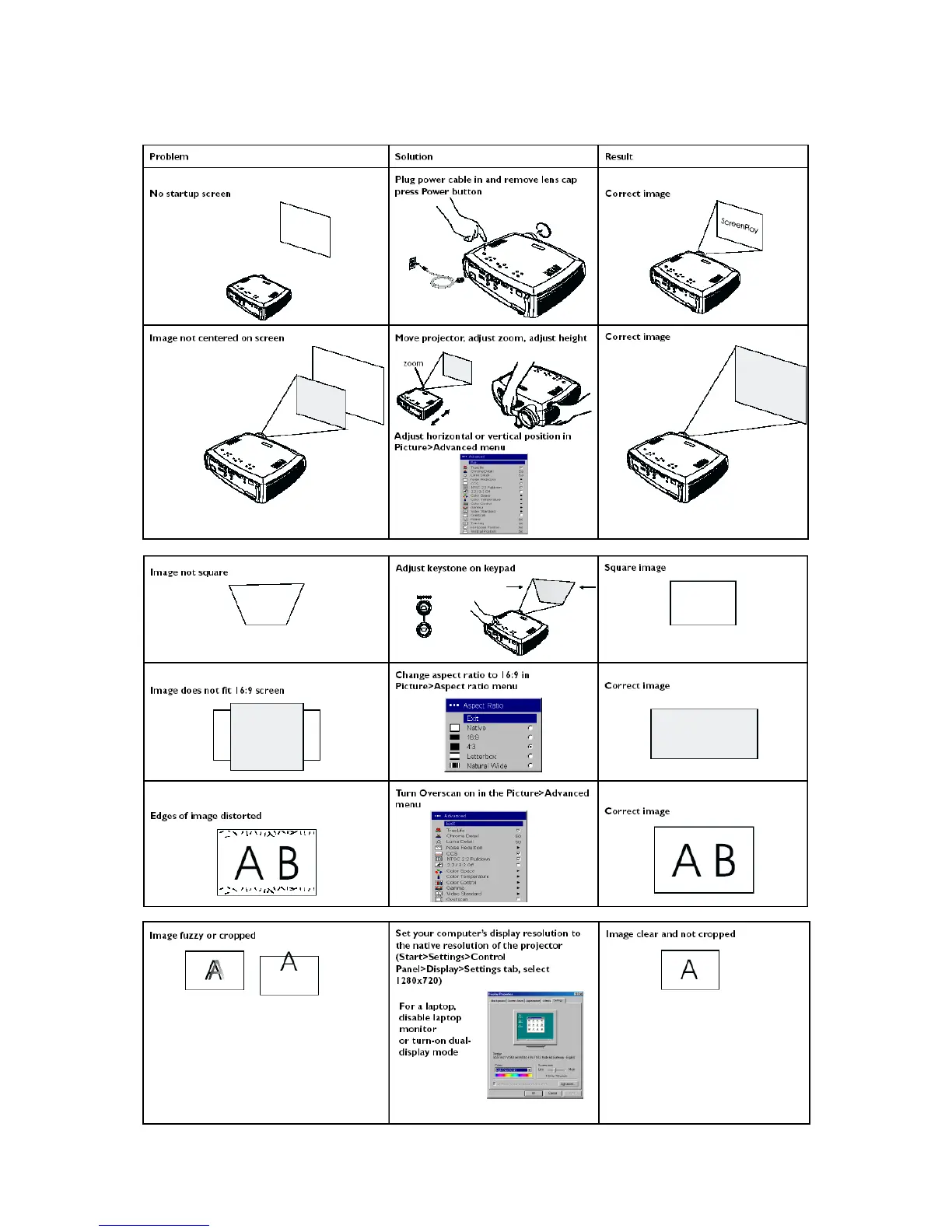 The following table shows some potential problems. In some cases, more than one possible solution is