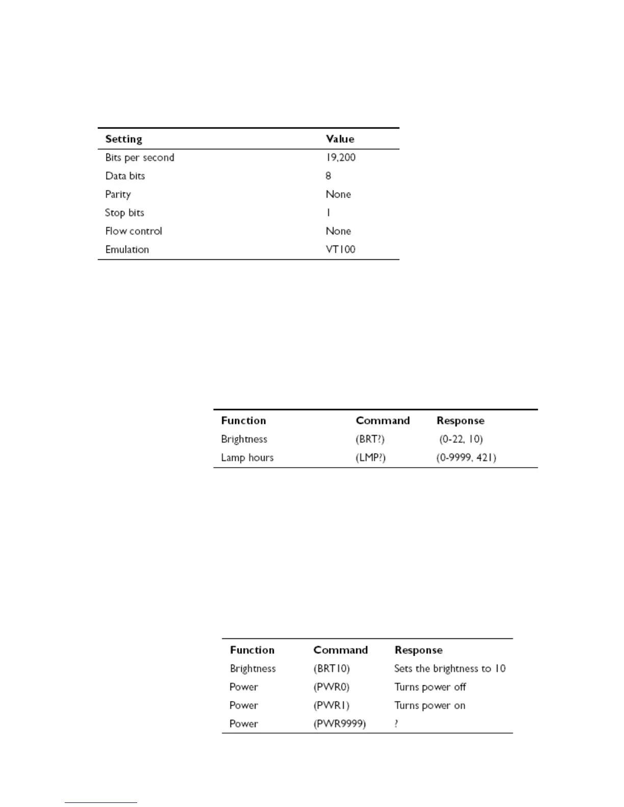 connec8tor on the projector and set your computer’s serial port settings to match this communication