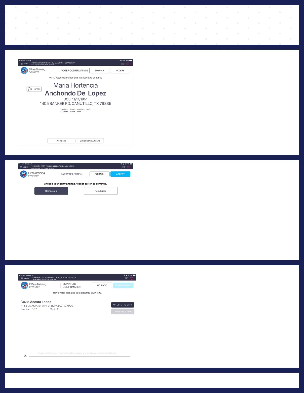 displays and asks the voter to sign their name.