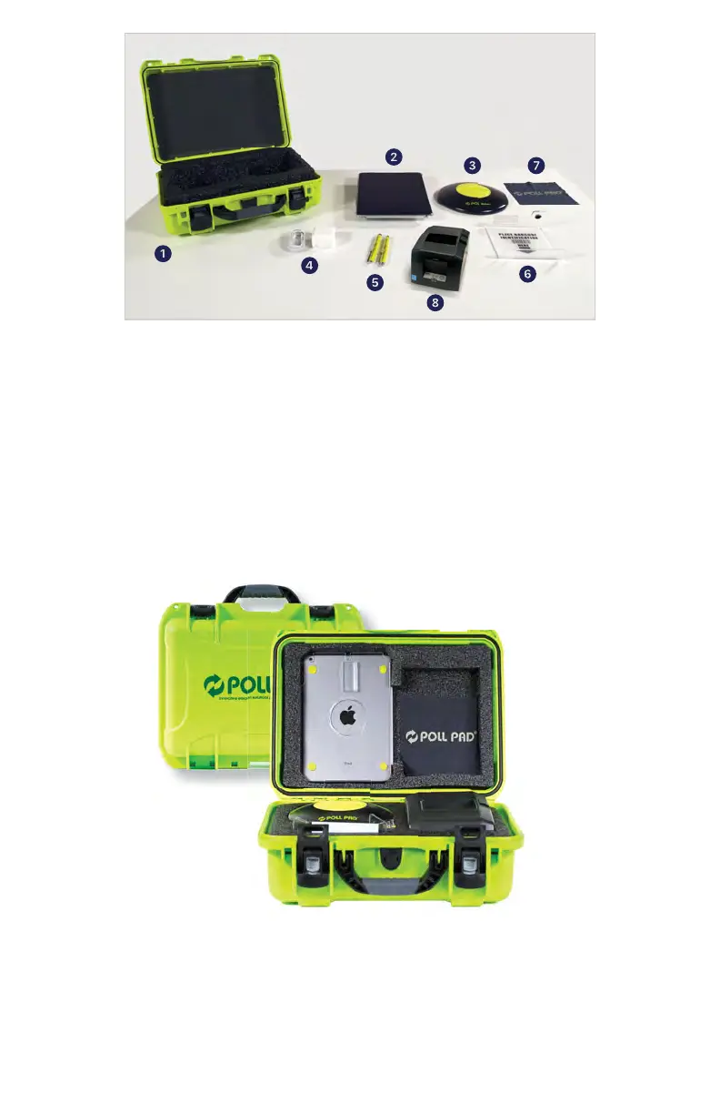 Green Case ➋ Poll Pad & Stand Arm ➌ Poll Pad Base