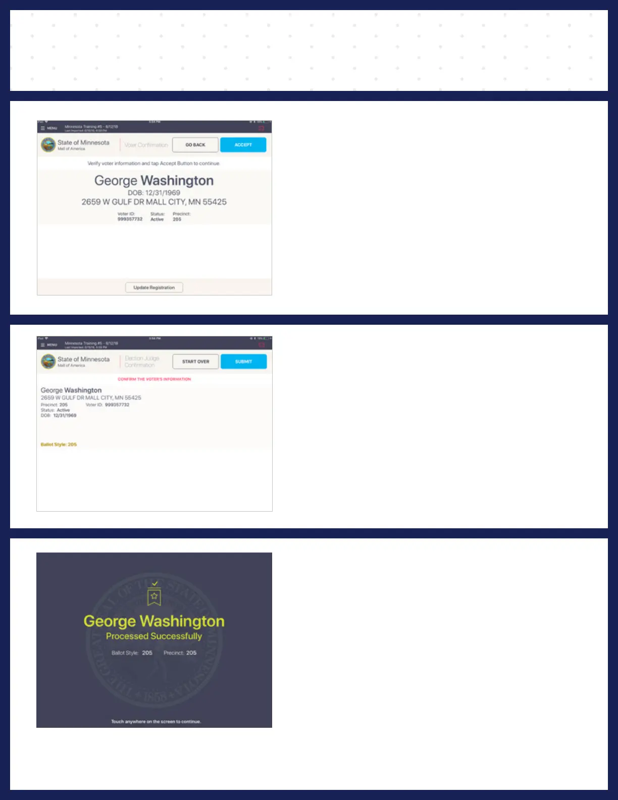 Poll worker to verify and confirm all information
