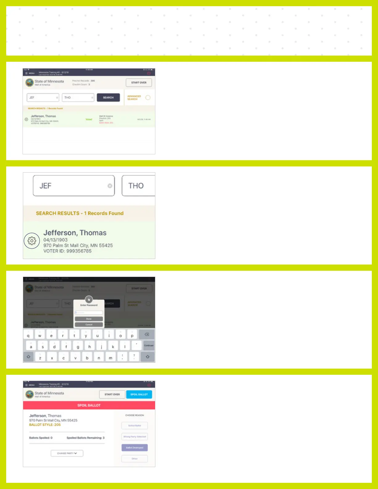 Look up voter needed to spoil ballot. Enter the first