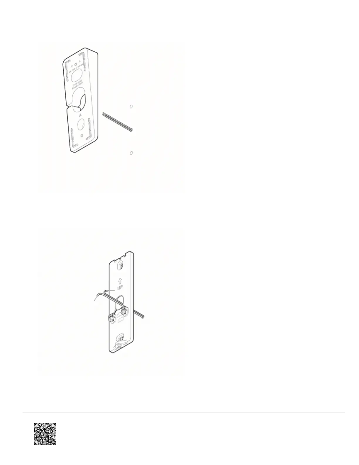 6. Thread doorbell wires through wallplate, making sure to thread wires underneath plastic bridges of wallplate