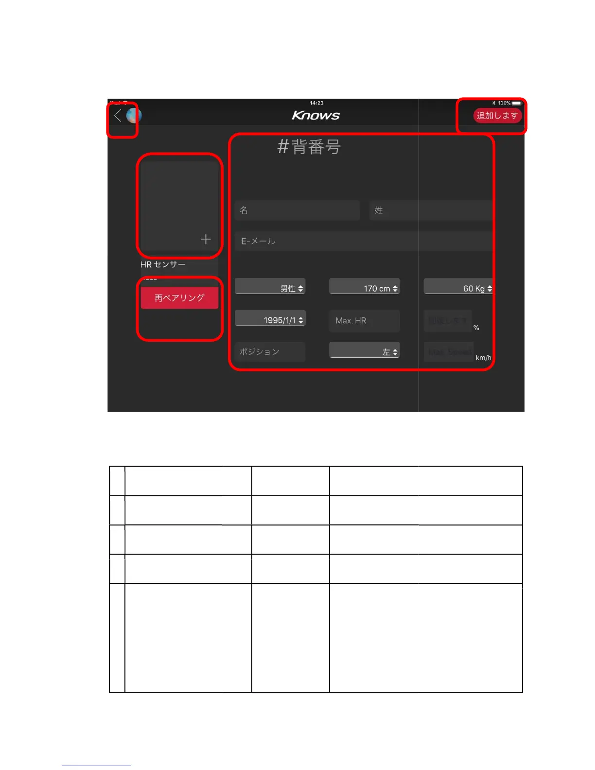 Knows KS-01 - Player addition screen
