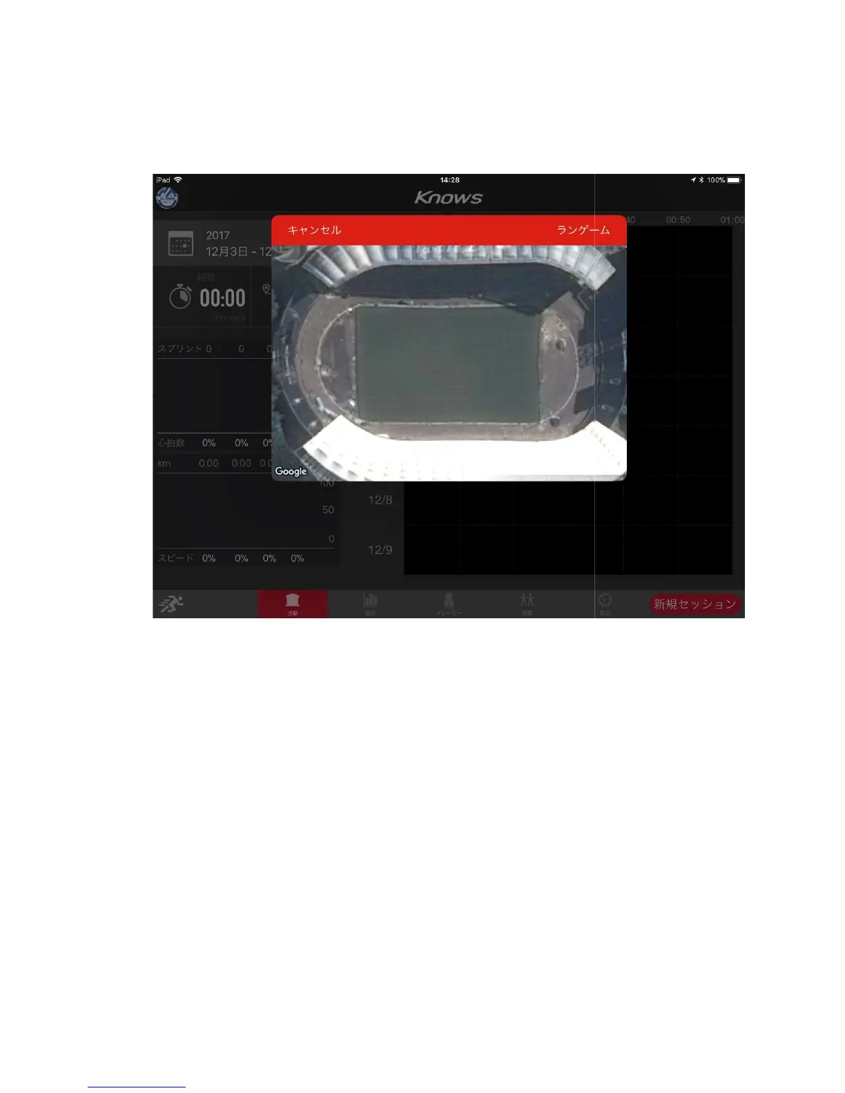 When you select a new session, first select the range of the exercise location from the GPS