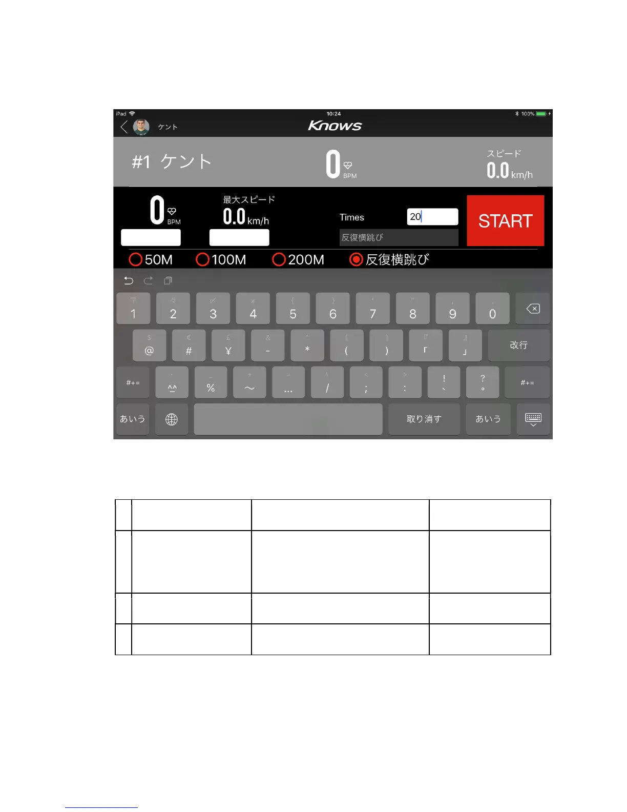 Knows KS-01 - Physical measurement mode (player individual setting screen - case of repetitive sideways jump)