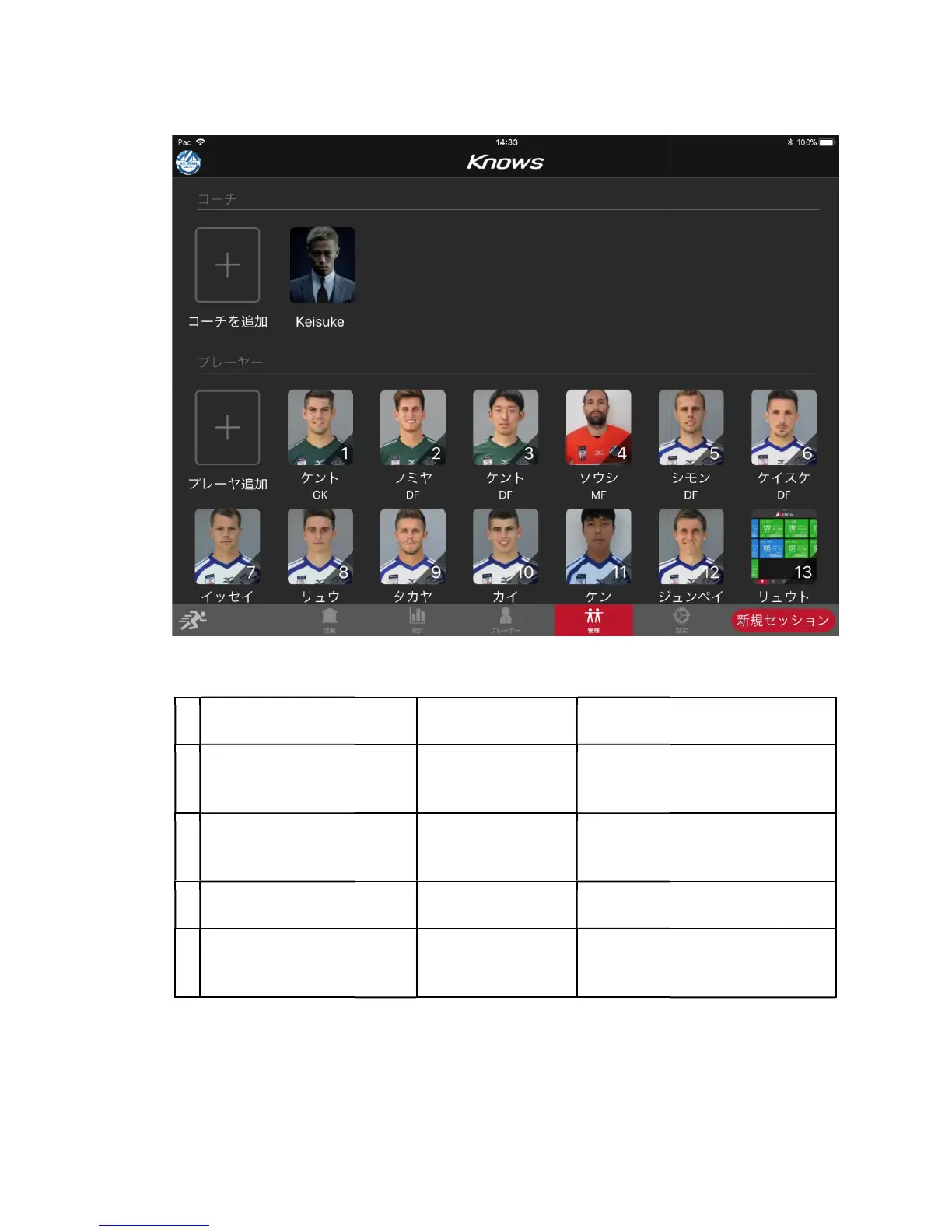 Knows KS-01 - Management; Create a new coach; Add a player