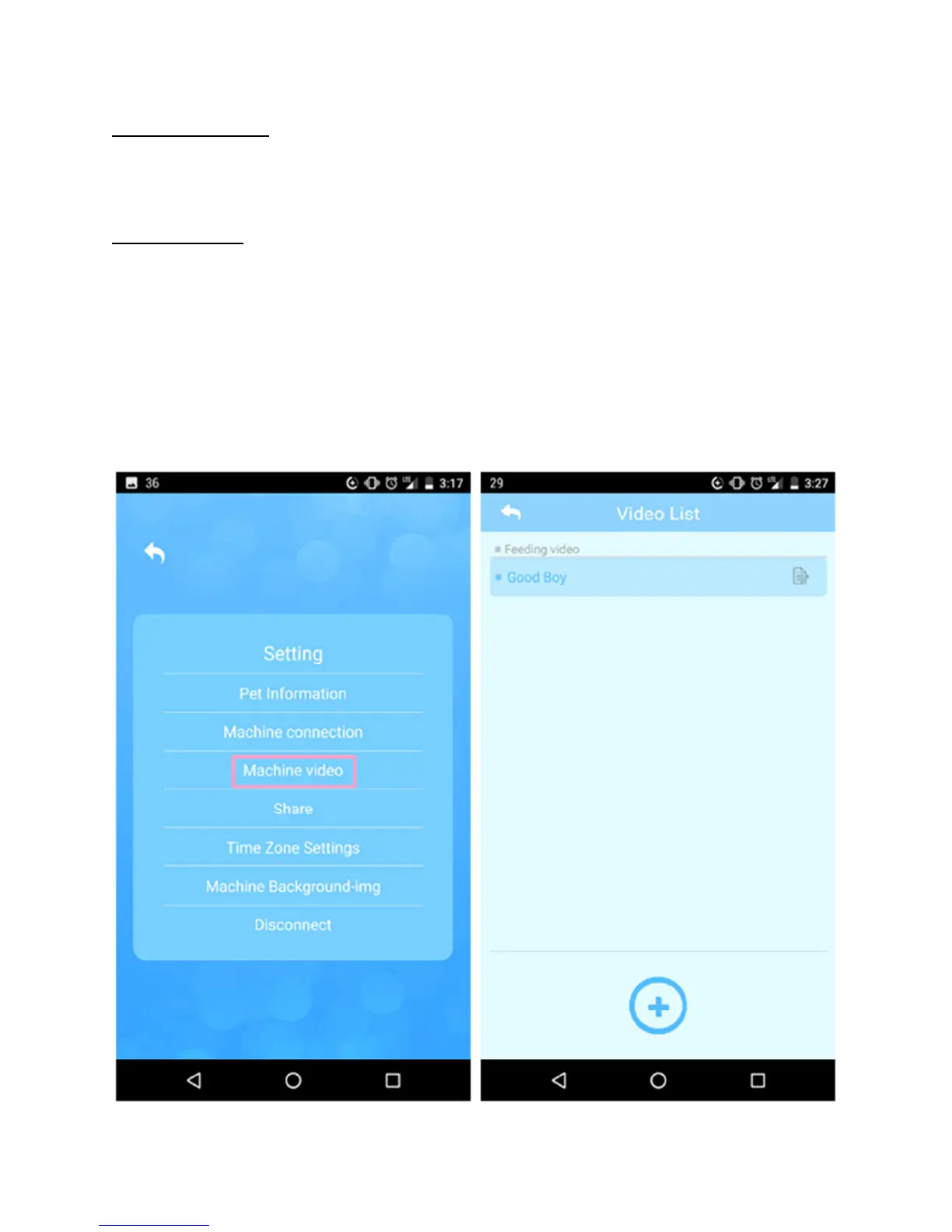 “Machine Video”. This brings up the “Video List”. Just tap the circle/+ icon at the
