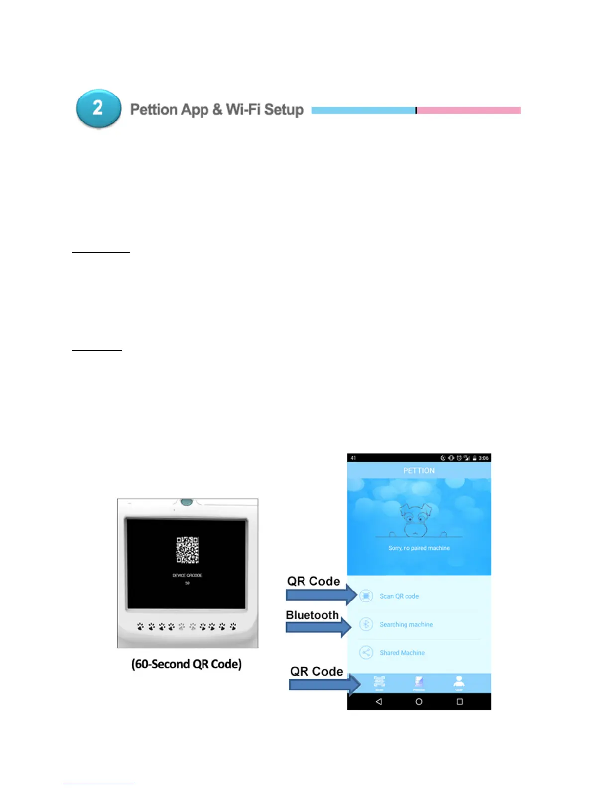QR Code – Turn on the Pettion app and either tap “Scan QR Code” or the “Scan”