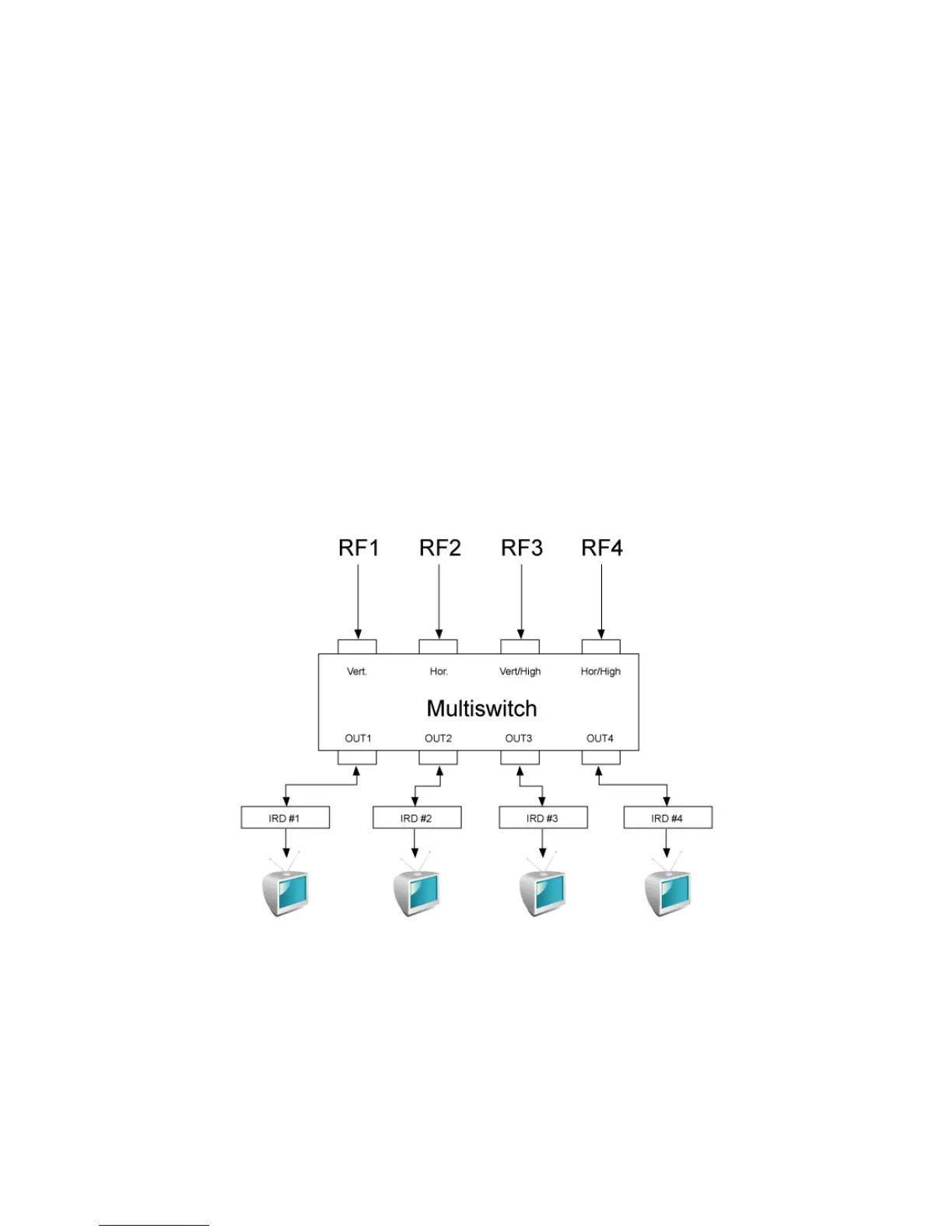 satellite TV receiver’s inputs to the output connectors on the multi-switch. Connect the