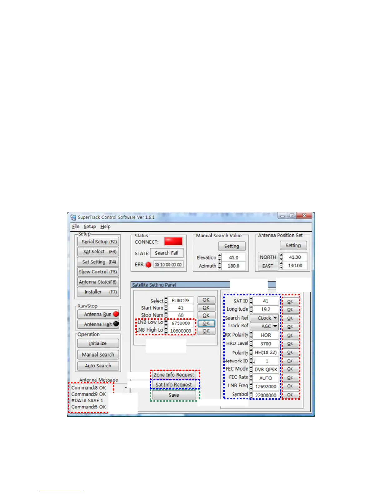 b. Click ‘Zone Info Request’ and ‘Sat Info Request’ to update from the PCU. Then,