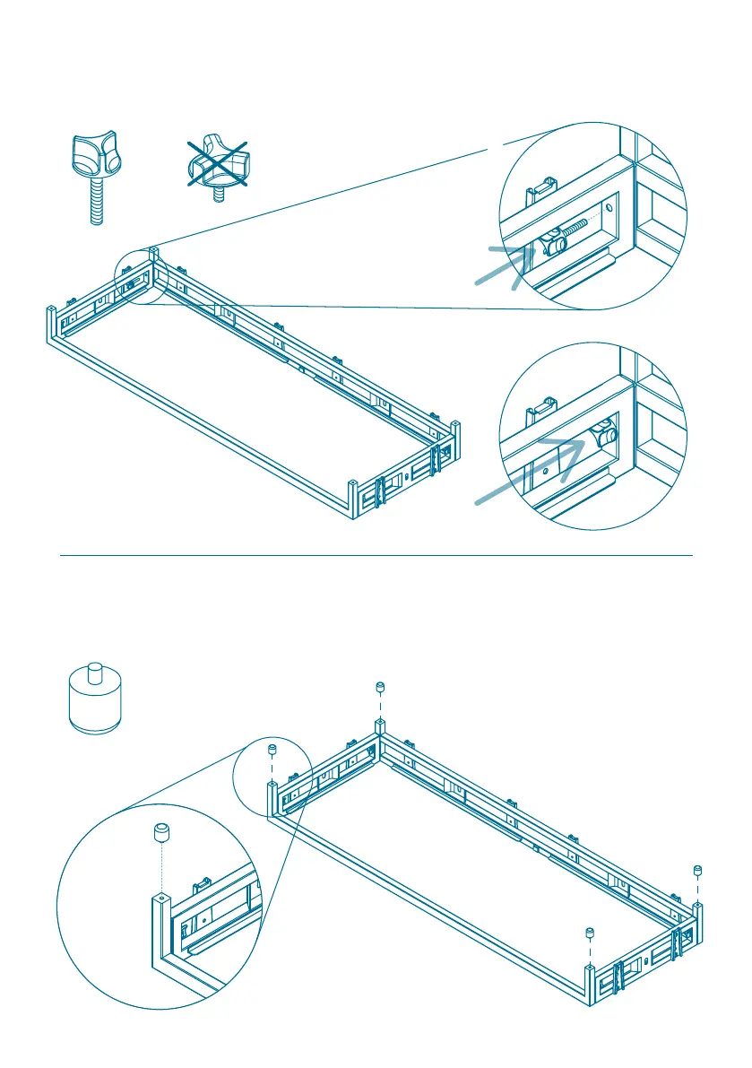 Screw the plastic legs into the frame.