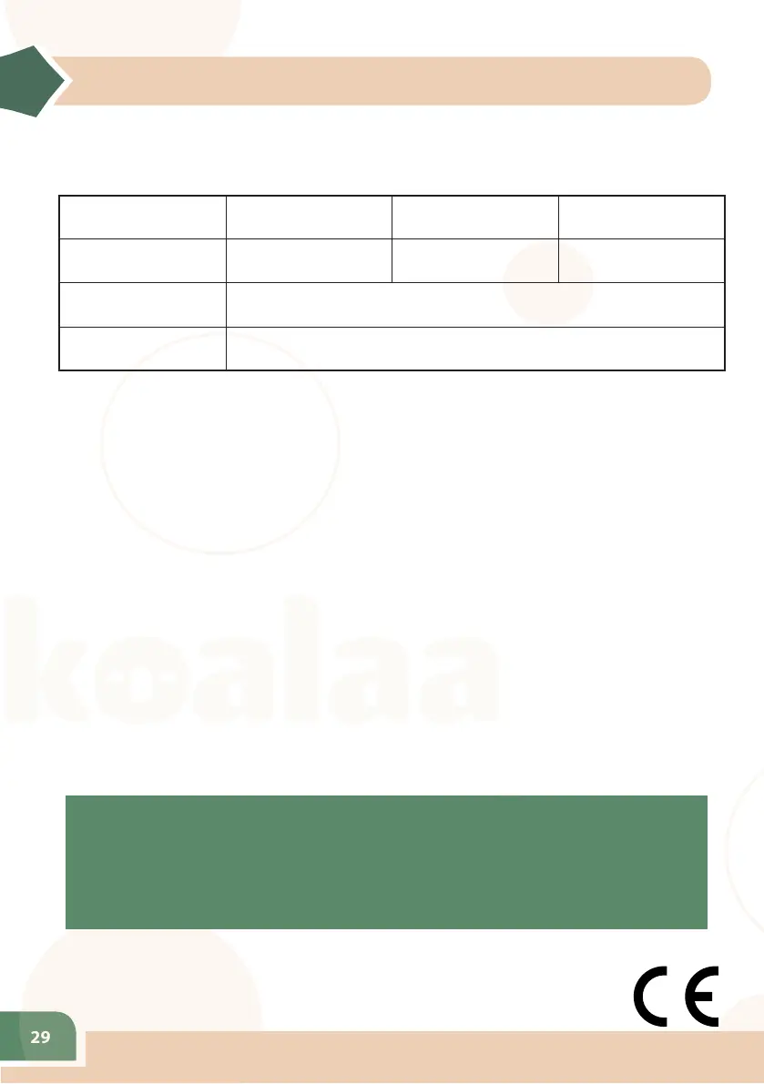 • Andere Teile fallen nicht unter die Garantie.