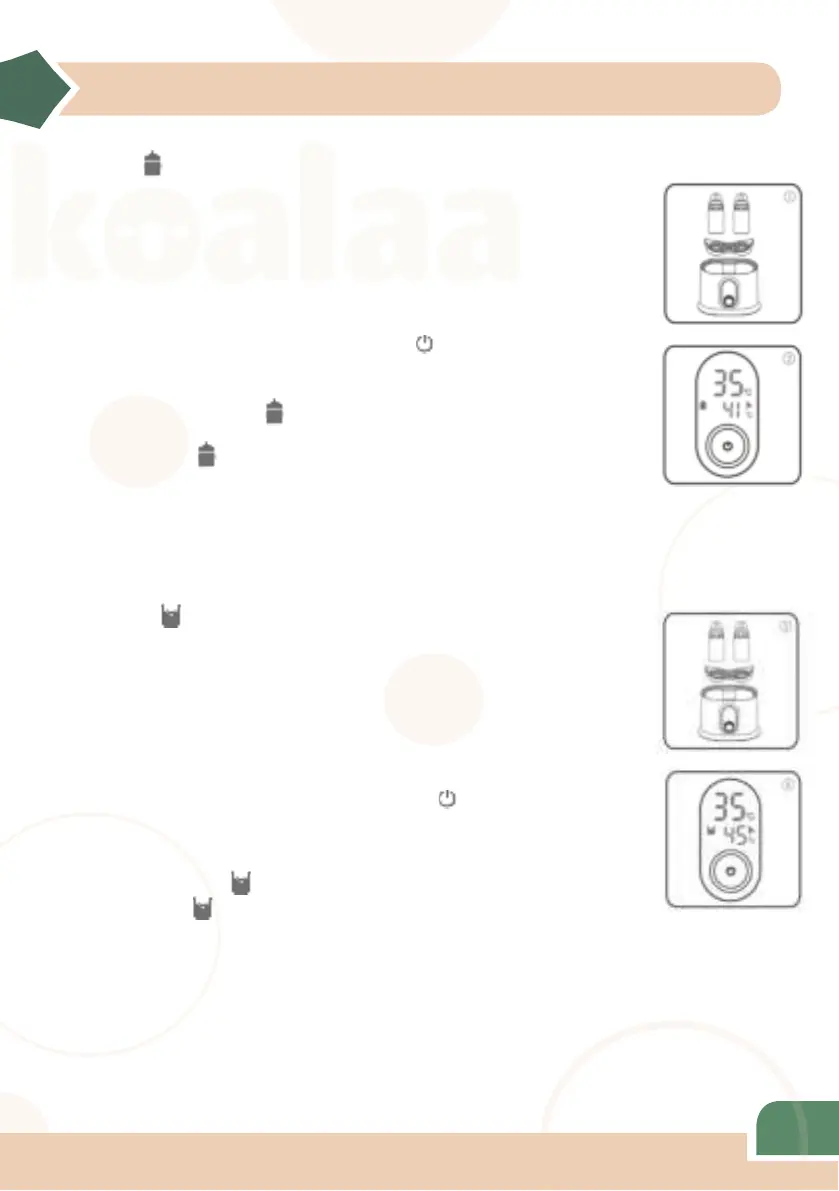 ‘Milk Formula’ position, the screen shows the current temperature of water,