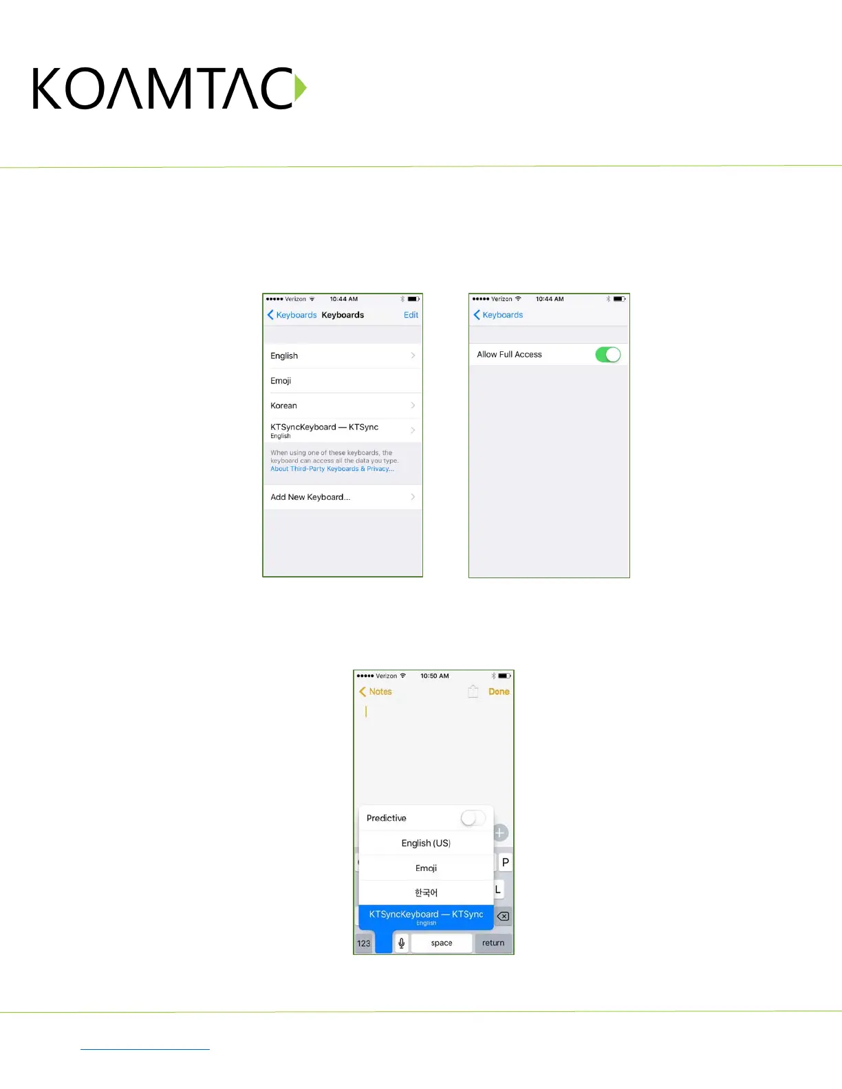 b) Select the KTSync Keyboard and toggle the switch to Allow Full Access. (Fig. 8)