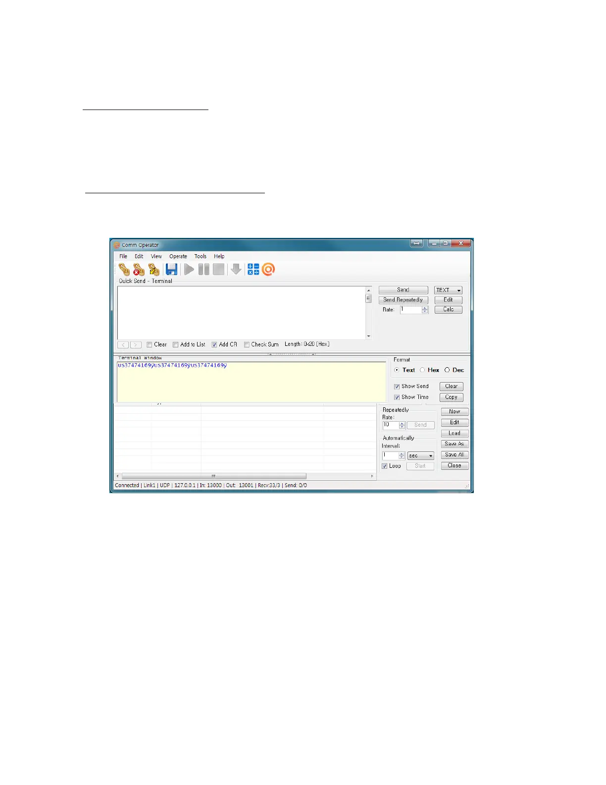 • Run the tester application “CommOp.exe” with UDP mode chosen.