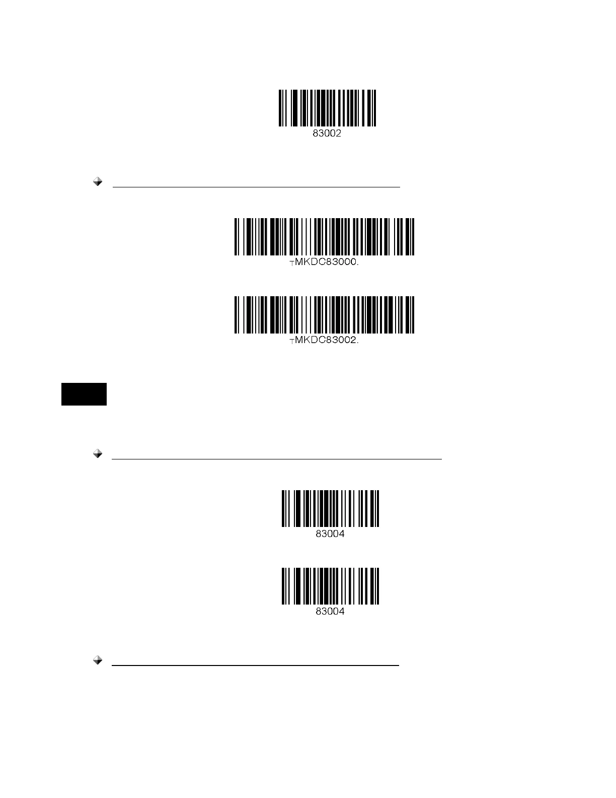 Users may also delete or display current prefixes by scanning the following special