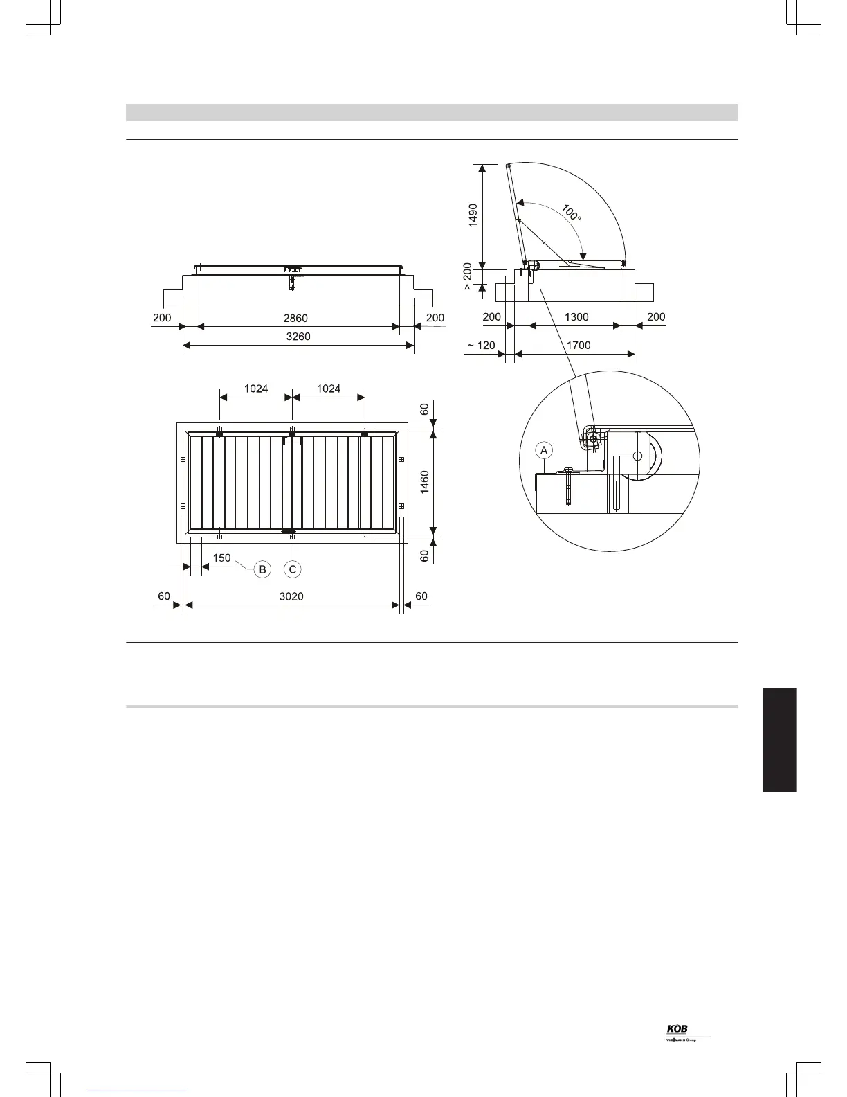 ■ Supporting structure: permissible load 250 kg/m², made from steel,