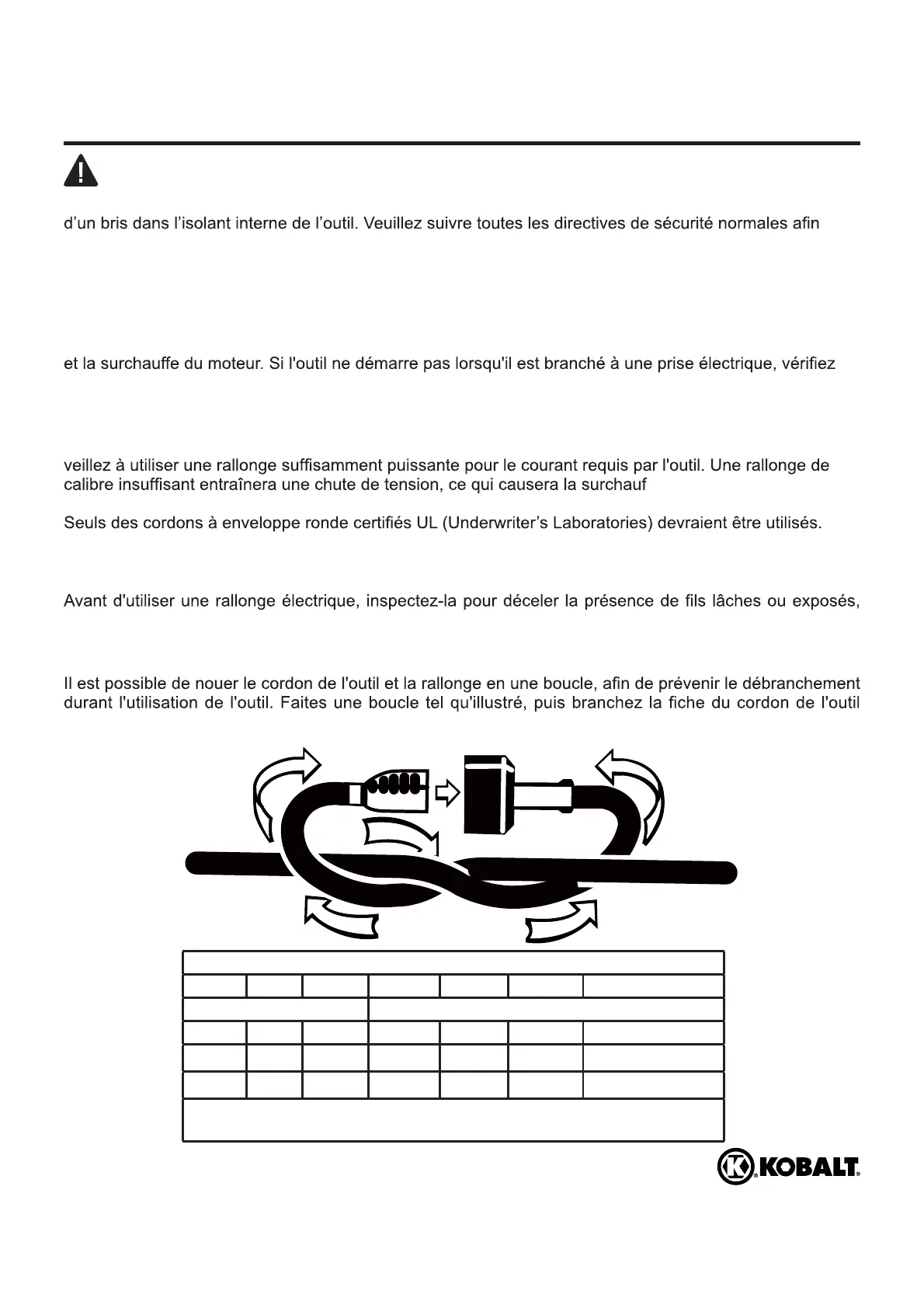 de puissance. Utilisez le tableau ci-dessous pour déterminer le calibre minimal requis de votre rallonge.