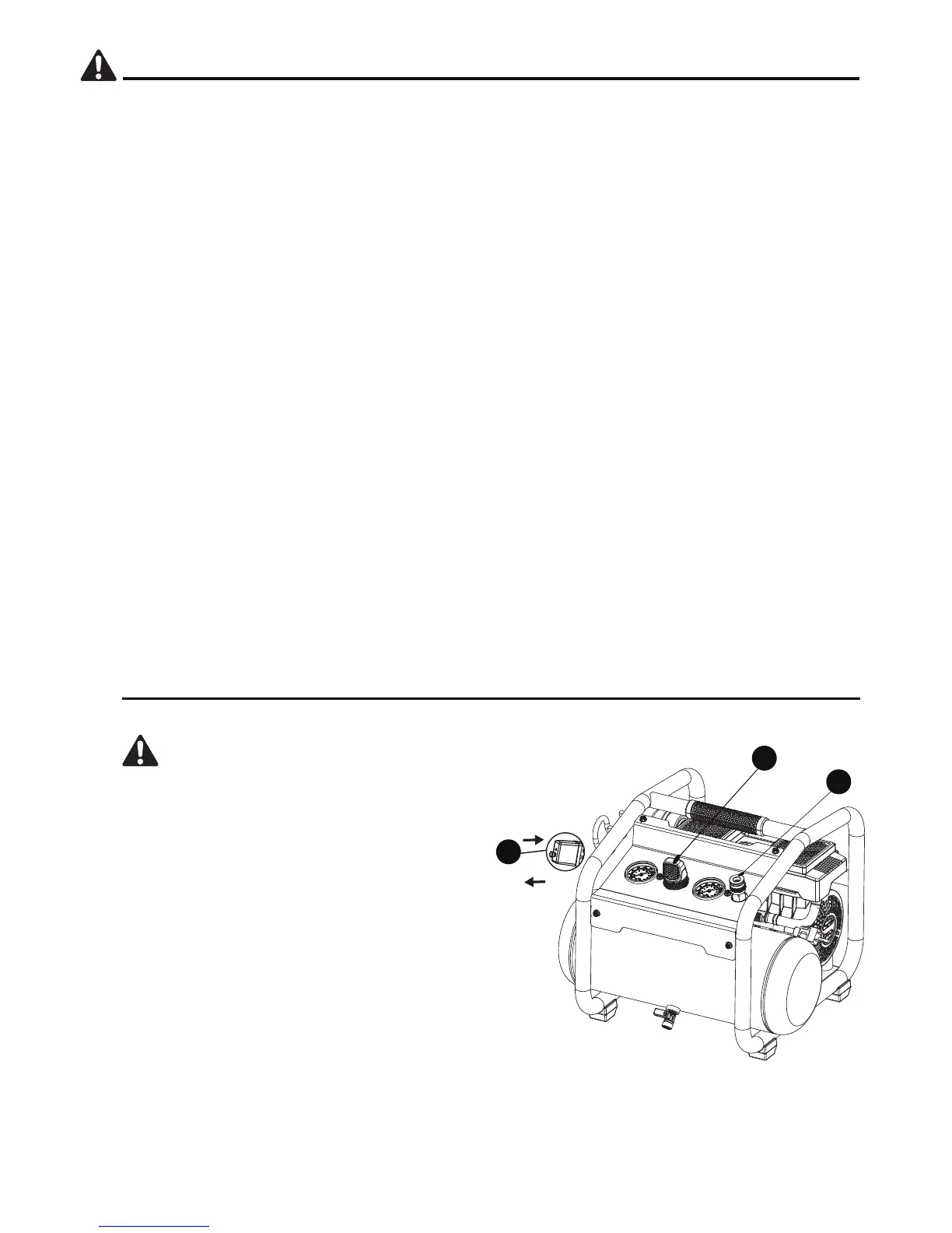 Nunca intente abrir la válvula de drenaje cuando la presión del tanque supere los 10 PSI.•