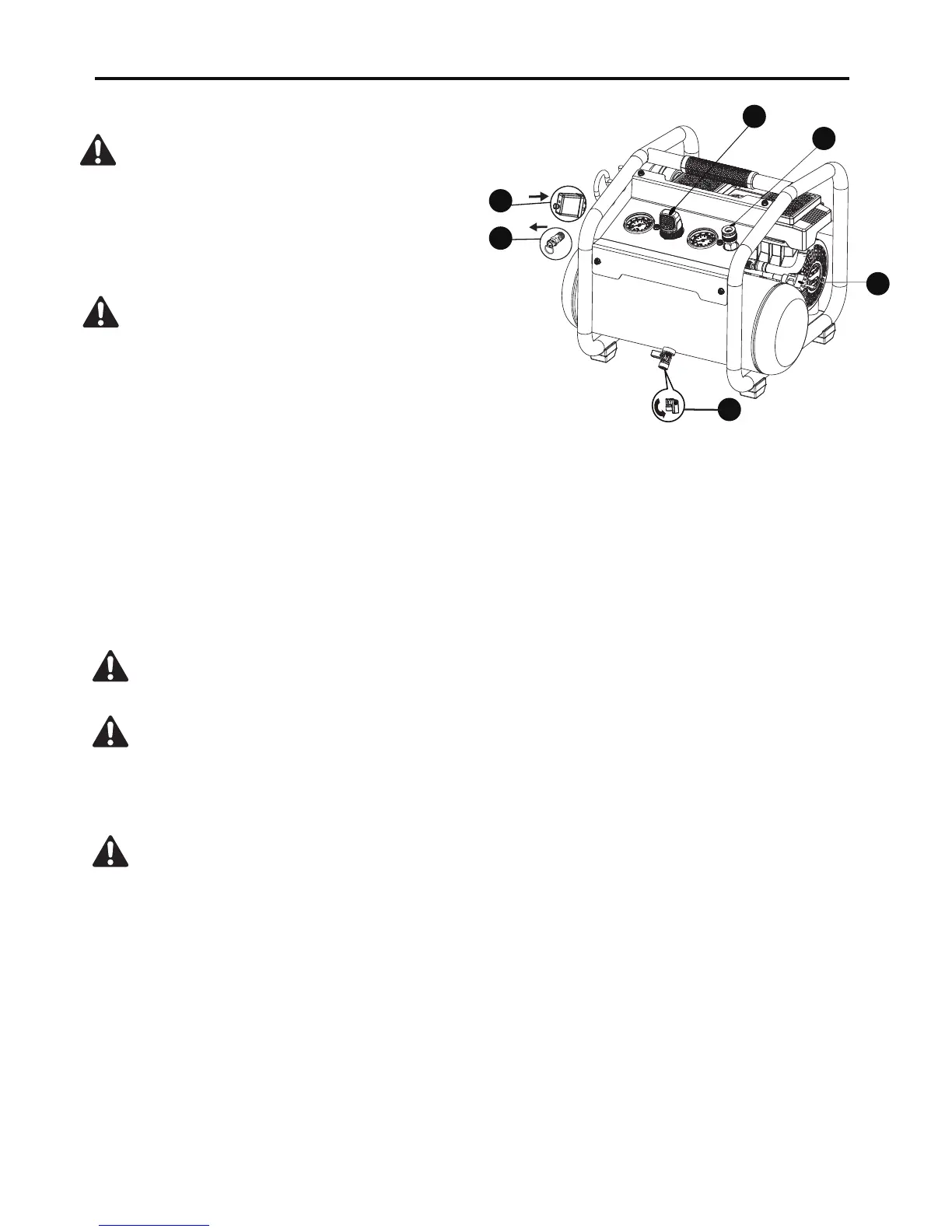 d. Incline el compresor de modo que la válvula de drenaje del tanque quede (G) en la parte inferior