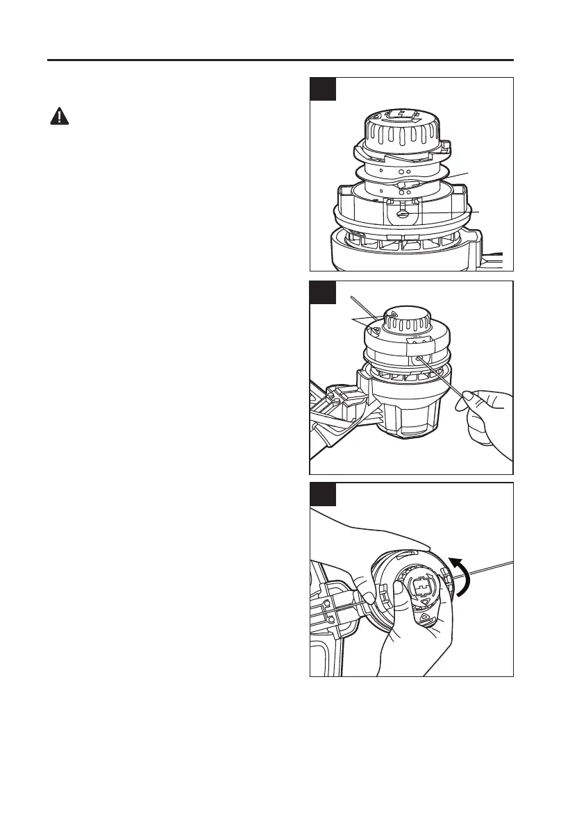 e. Sostenga la base del carrete y gire el cabezal