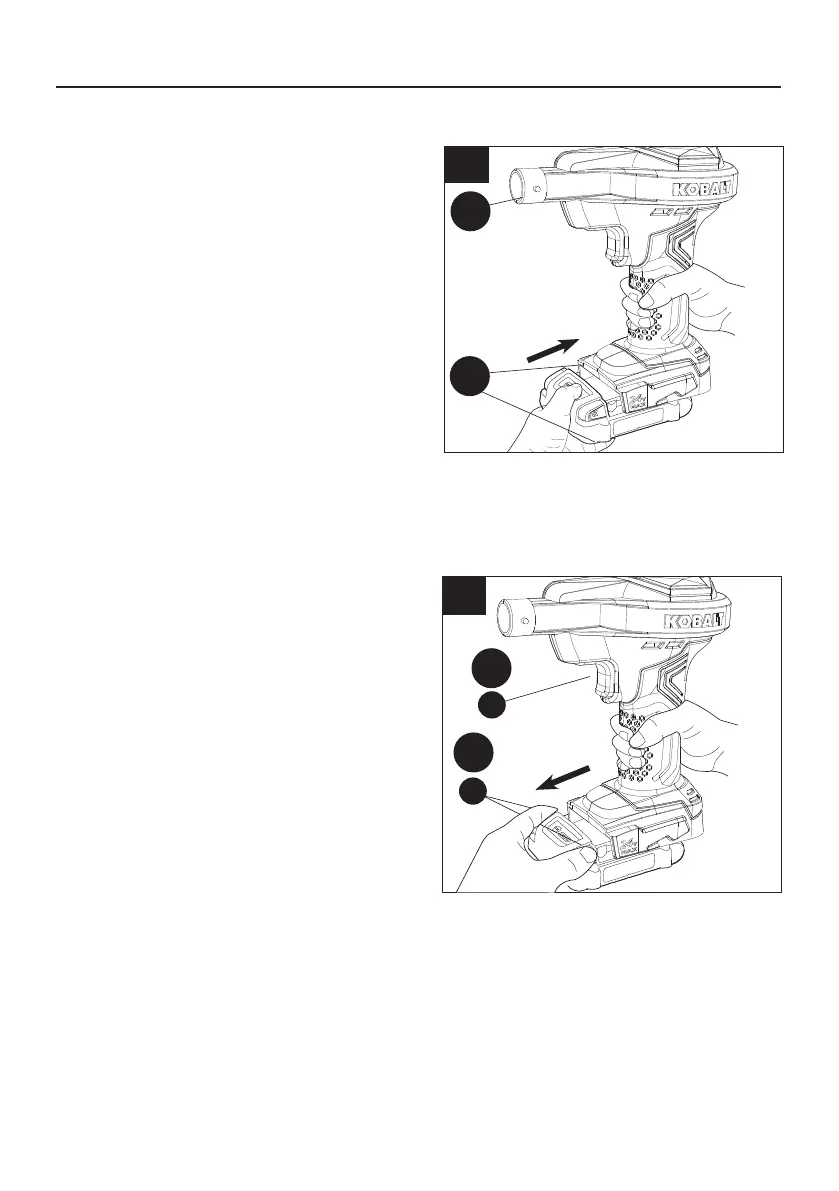 NOTICE: When placing the battery pack on the inator, be sure that the raised rib on battery pack