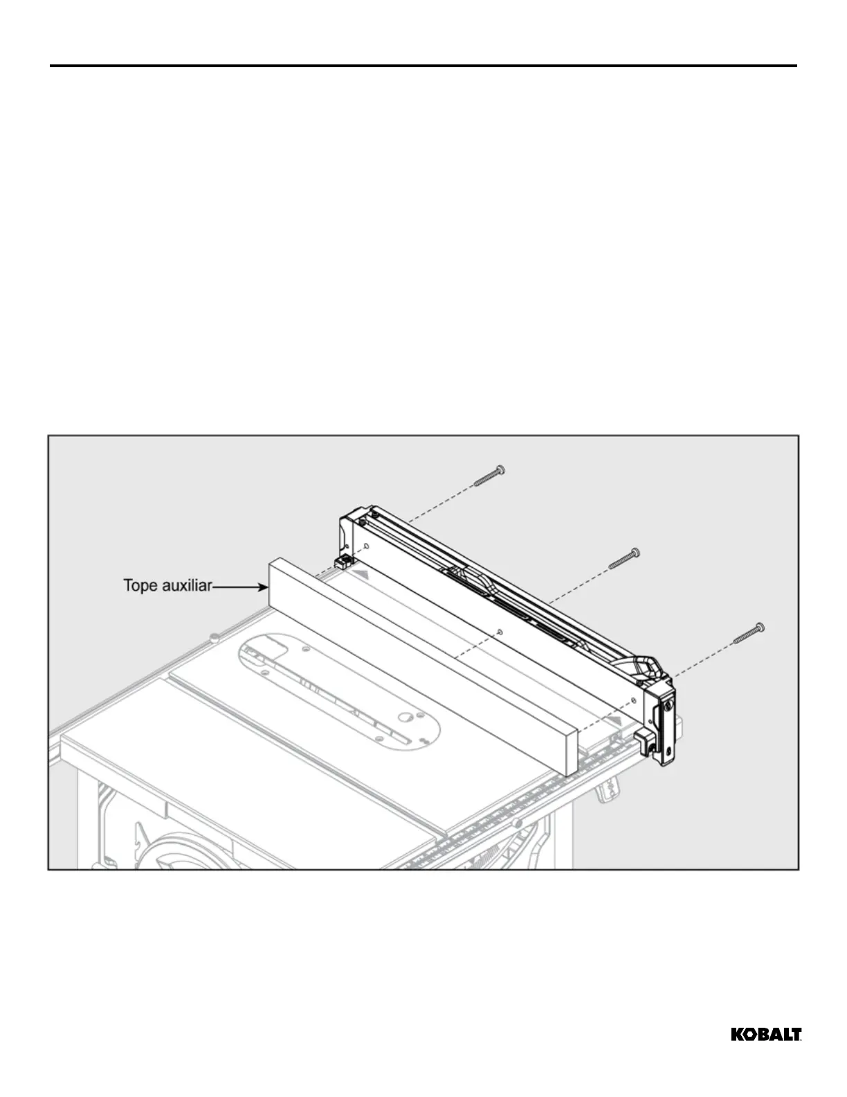 • Sujete el tope auxiliar al tope-guía; coloque la madera contra el tope-guía y en la mesa de la sierra
