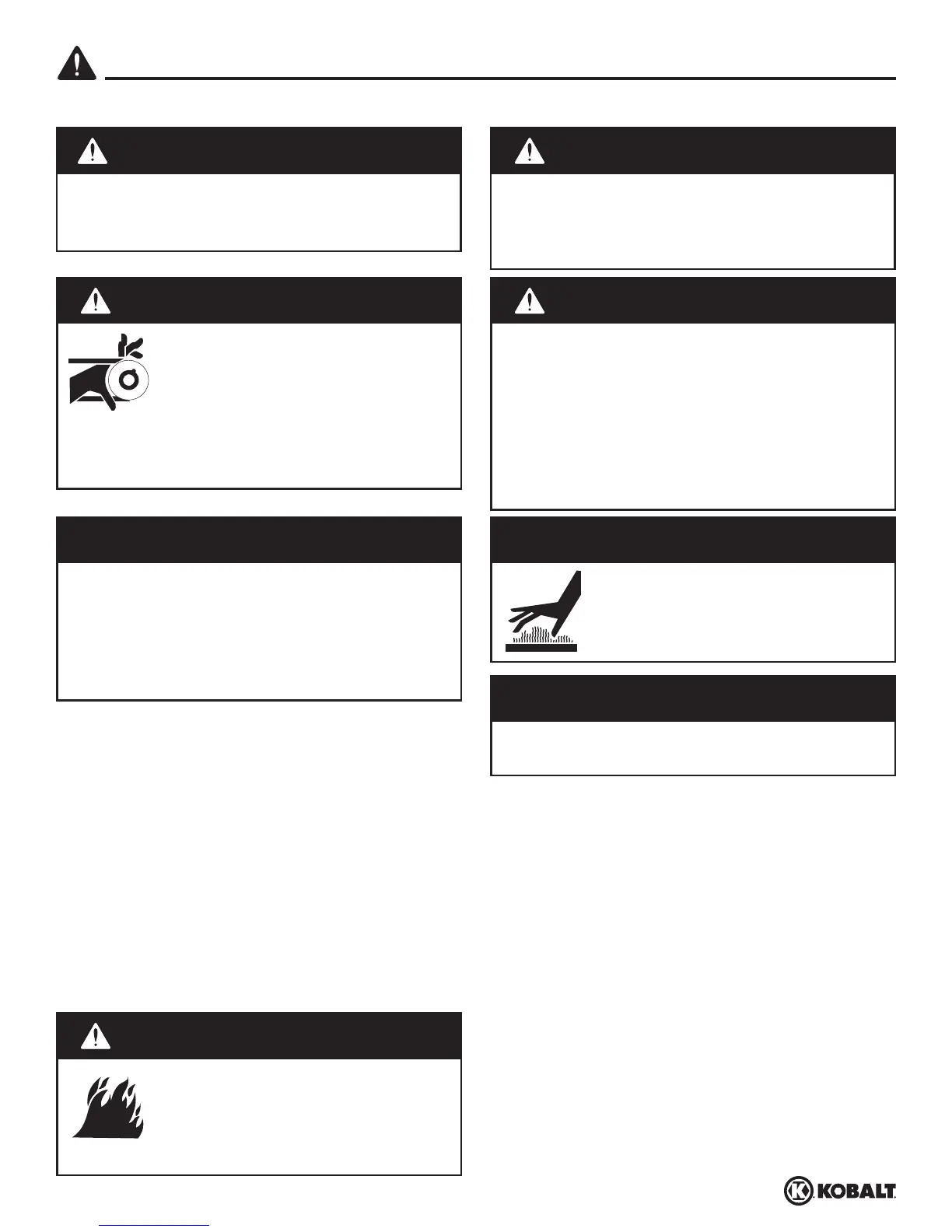 Risque de blessure. Les pièces