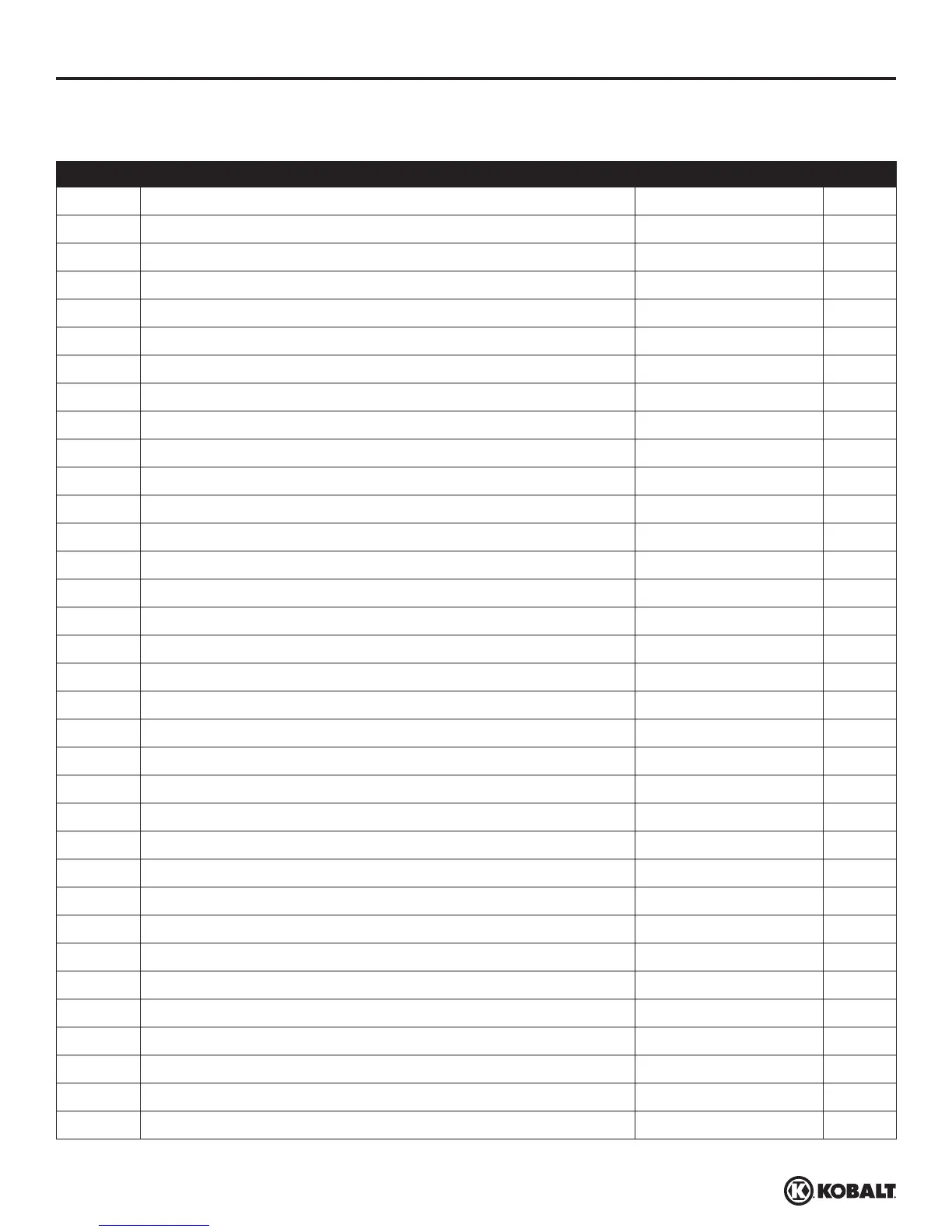 Para obtener piezas de repuesto, llame a nuestro Departamento de Servicio al Cliente al 1-888-3KOBALT
