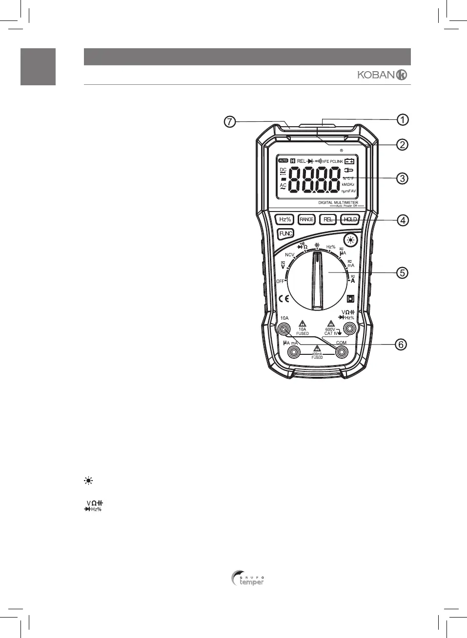 Hz% key: used for duty ratio and frequency measurement function switch.