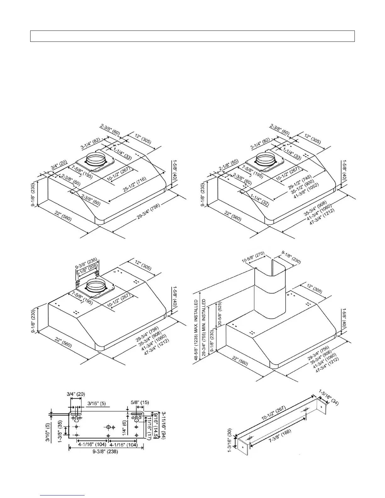 All inch measurements are converted from millimeters. Inch