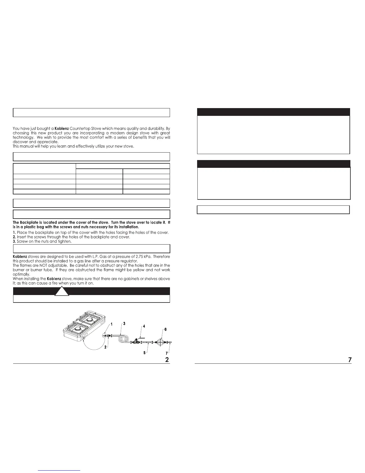 NEVER CONNECT THE STOVE DIRECTLY TO THE GAS TANK.