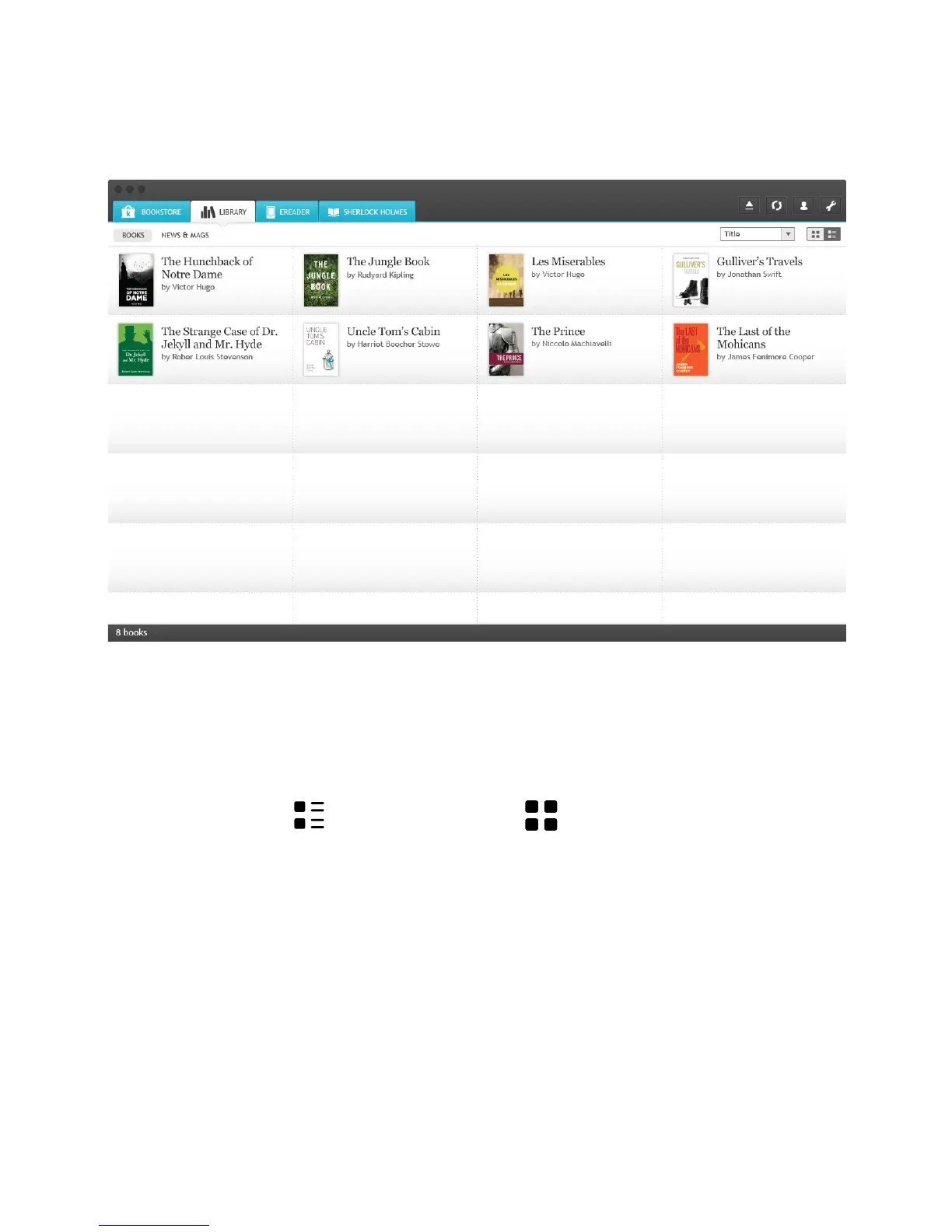 You!can!also!sort!your!books!by!title,!date,!or!author.!This!gives!