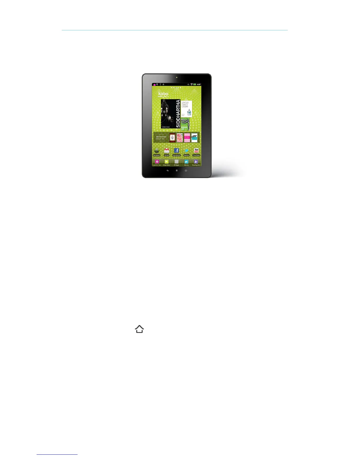 • At any time, press the Home button on your Kobo Vox.